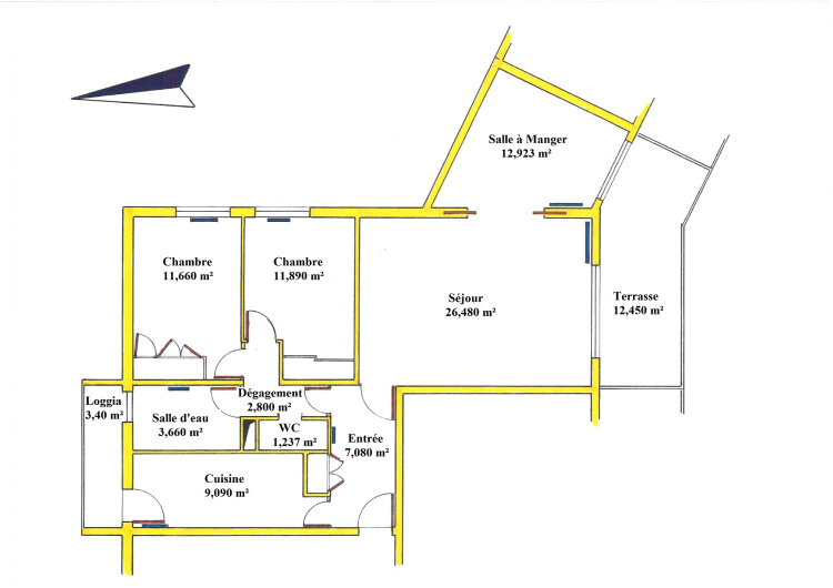 3/4 Pièces de 87,82 m² - terrasse – triple exposition – deux...